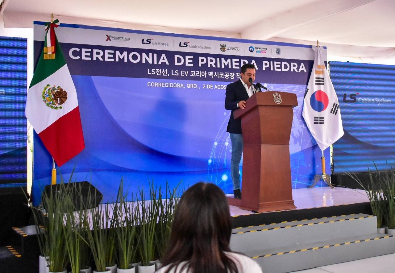 En compañía del gobernador, Mauricio Kuri González, el presidente municipal de Corregidora, Adolfo Colín Sánchez, acudió a la colocación de la primera piedra de la empresa LS Cable & System…