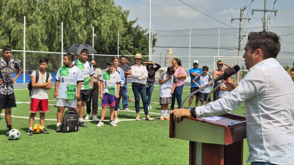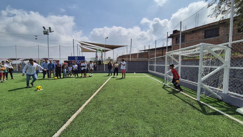 Entrega alcalde de Corregidora rehabilitación de cancha deportiva en El Milagrito