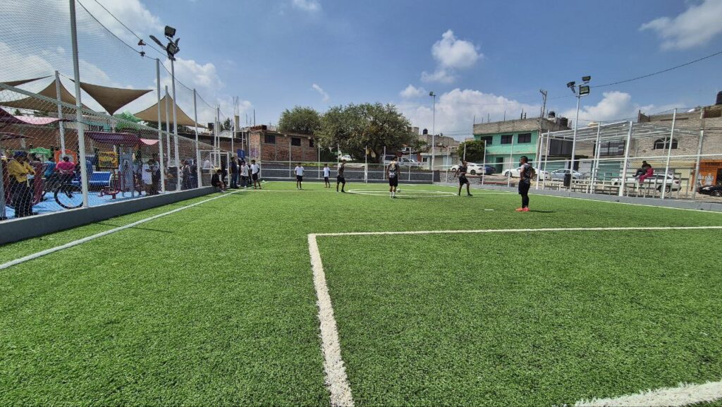 El titular de la Secretaría de Obras Públicas del Municipio de Corregidora, Juan Carlos García Sánchez, detalló que los trabajos realizados fueron: Retiro y sustitución de pasto sintético y cubierta de policarbonato, cubierta de malla sombra, desmantelamiento y sustitución de estructura metálica y malla ciclónica y la colocación de pintura vinílica en muros.