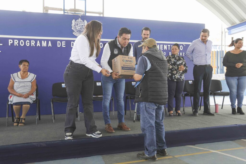 El presidente municipal de Corregidora, Adolfo Colín Sánchez, acompañó a la titular de la Secretaría de Desarrollo Social del Estado de Querétaro, Diana Pérez Mejía, a la entrega de apoyos alimentarios para personas que se encuentran en situación de vulnerabilidad en la colonia La Negreta.