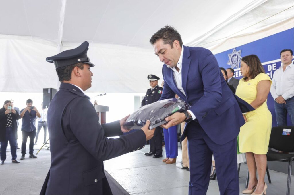 De igual manera, el presidente municipal hizo entrega de grados a cuatro elementos de la Secretaría de Seguridad Pública Municipal: uno como policía primero, dos como suboficiales y uno más como oficial, tras cumplir con requisitos como la antigüedad, capacitación y pruebas físicas, psicológicas, médicas y de control de confianza.