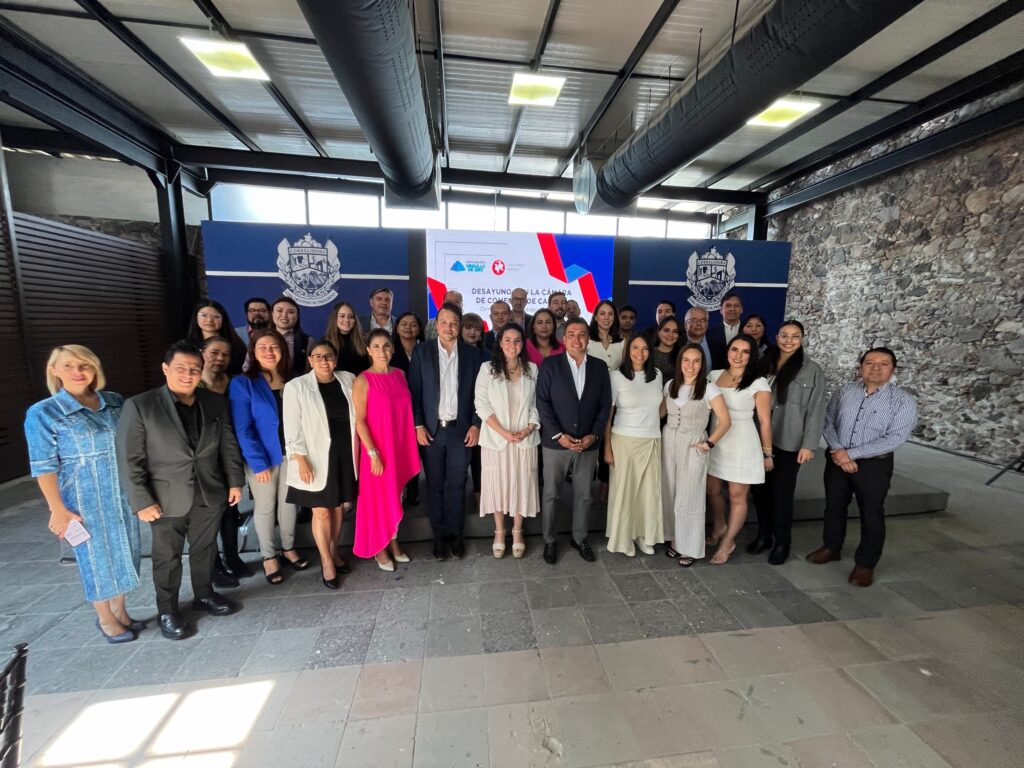 El presidente municipal de Corregidora, Adolfo Colín Sánchez, encabezó un desayuno con integrantes de la Cámara de Comercio de Canadá en México, donde les compartió las cualidades con las que cuenta la demarcación para la instalación de empresas.