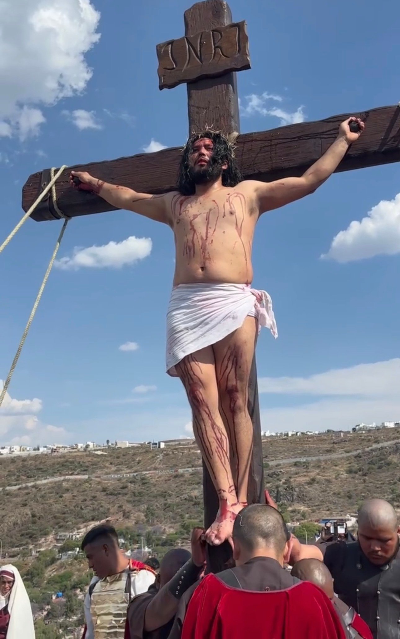 Este Viernes Santo, se llevó a cabo la 161 edición de la representación del Viacrucis Viviente de la Vida, Pasión, Muerte y Resurrección de Jesucristo, en La Cañada, municipio de El Marqués en Querétaro abril 4, 2026