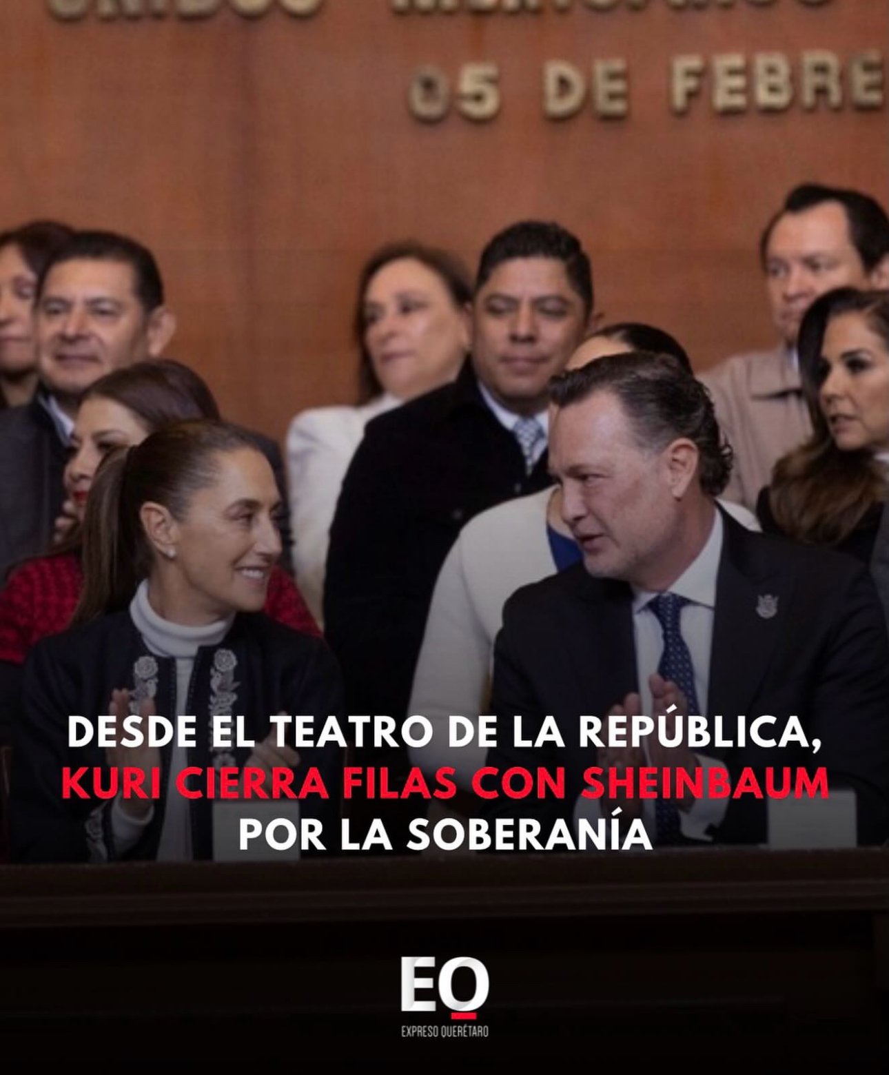 📲 Resumen del jueves 05 de febrero de 2026 de Expreso Querétaro:🏛️ Desde el Teatro de la República, Kuri cierra filas con Sheinbaum por la soberanía.🚉 Moverán estación del tren Méx-Qro a Jesús María.👞 Le limpian zapatos a Ministro Presidente de la SCJN, Hugo Aguilar. febrero 6, 2026