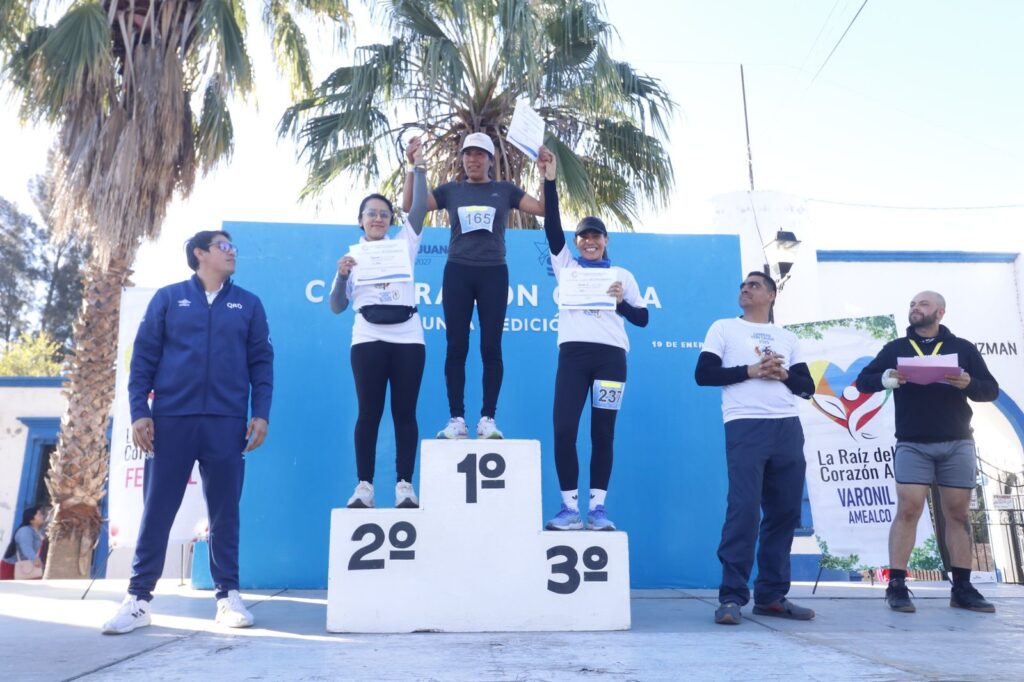 Las ganadoras de la categoría 5 kilómetros Femenil, Lorena Reséndiz y Cira María Garrido, lograron las primeras posiciones. En la rama Varonil, Horacio González López, conquistó el primer lugar; Ivan Miraflores Galindo, el segundo puesto y el tercer lugar fue para Francisco Javier Reza García.